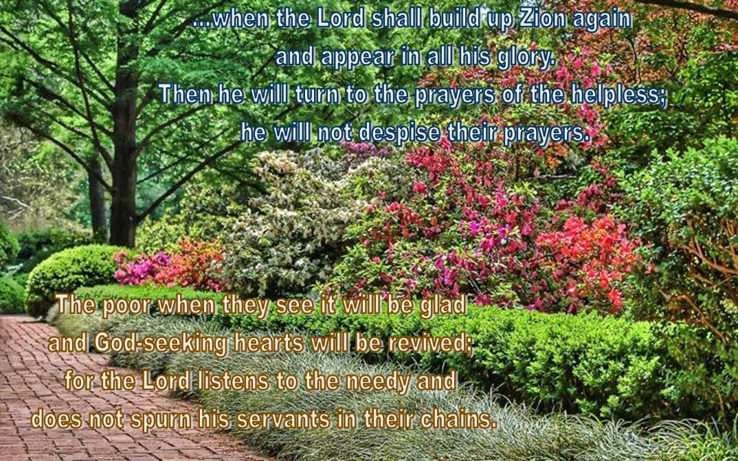 The Lord will build up Zion again and appear in all his glory—Extracted from Psalm 102: 16-23
