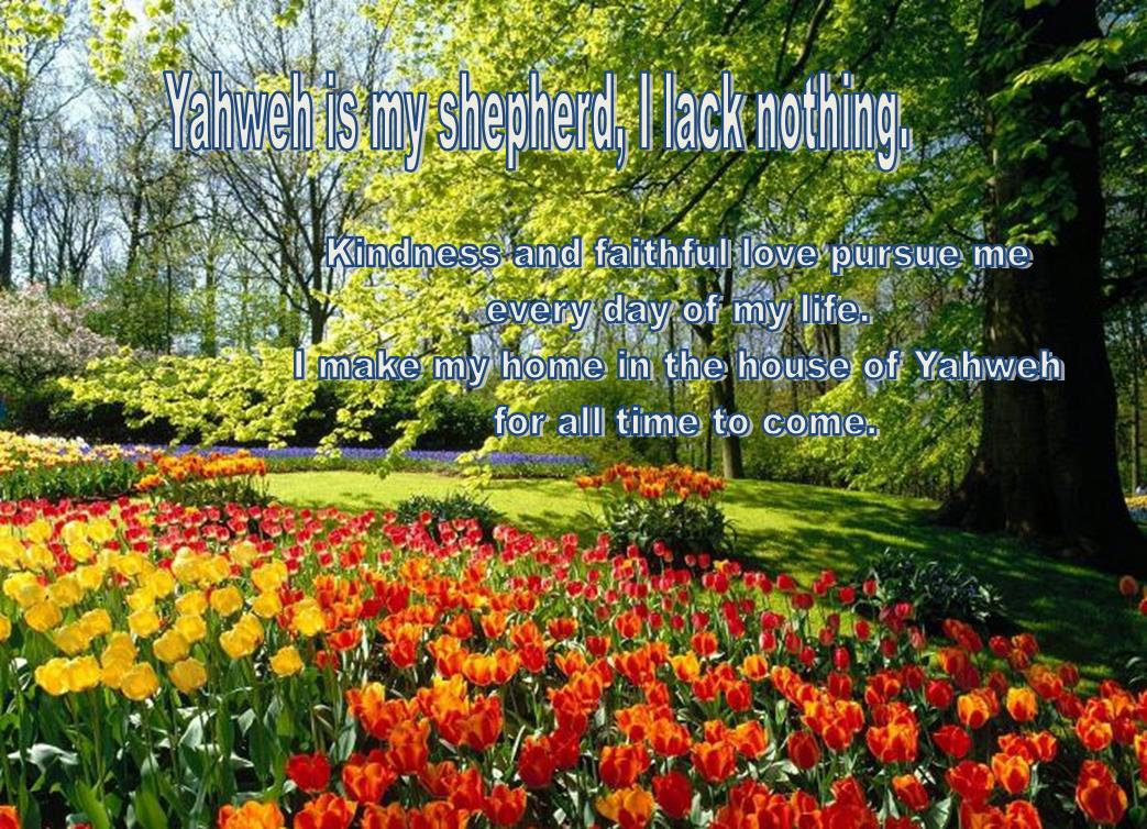 1 [Psalm Of David] Yahweh is my shepherd, I lack nothing.