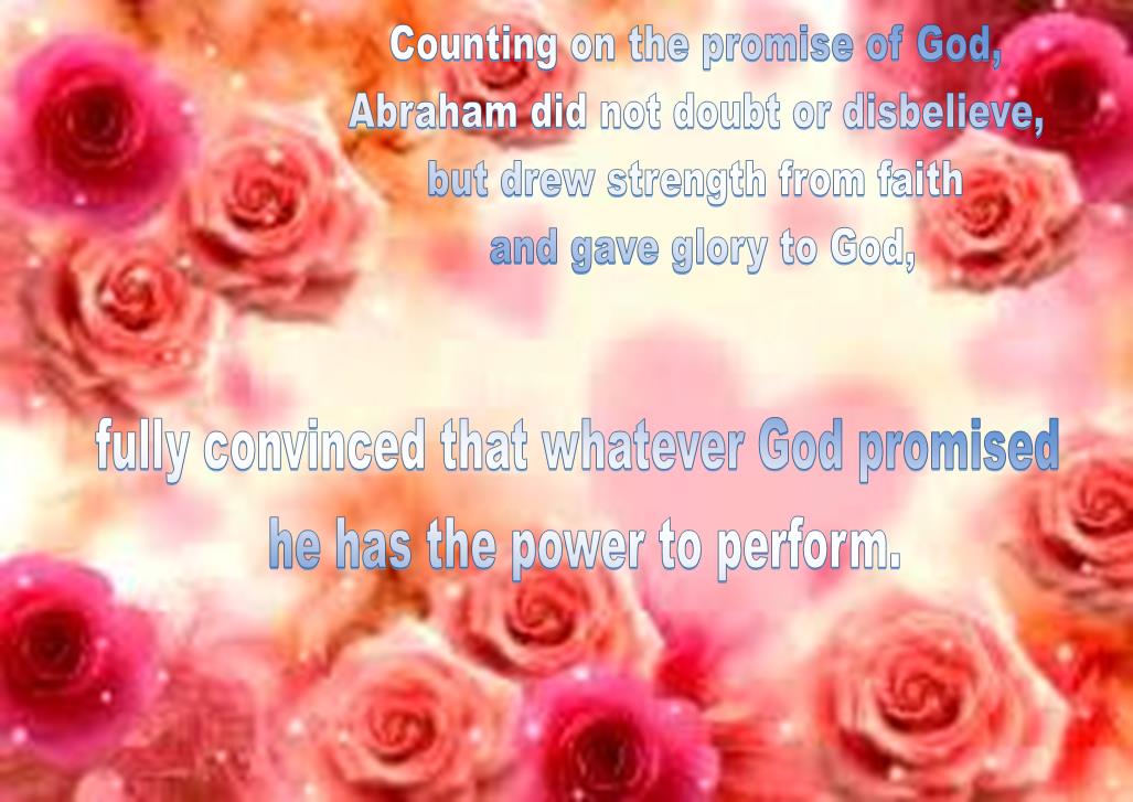 20 Counting on the promise of God, he did not doubt or disbelieve, but drew strength from faith and gave glory to God,