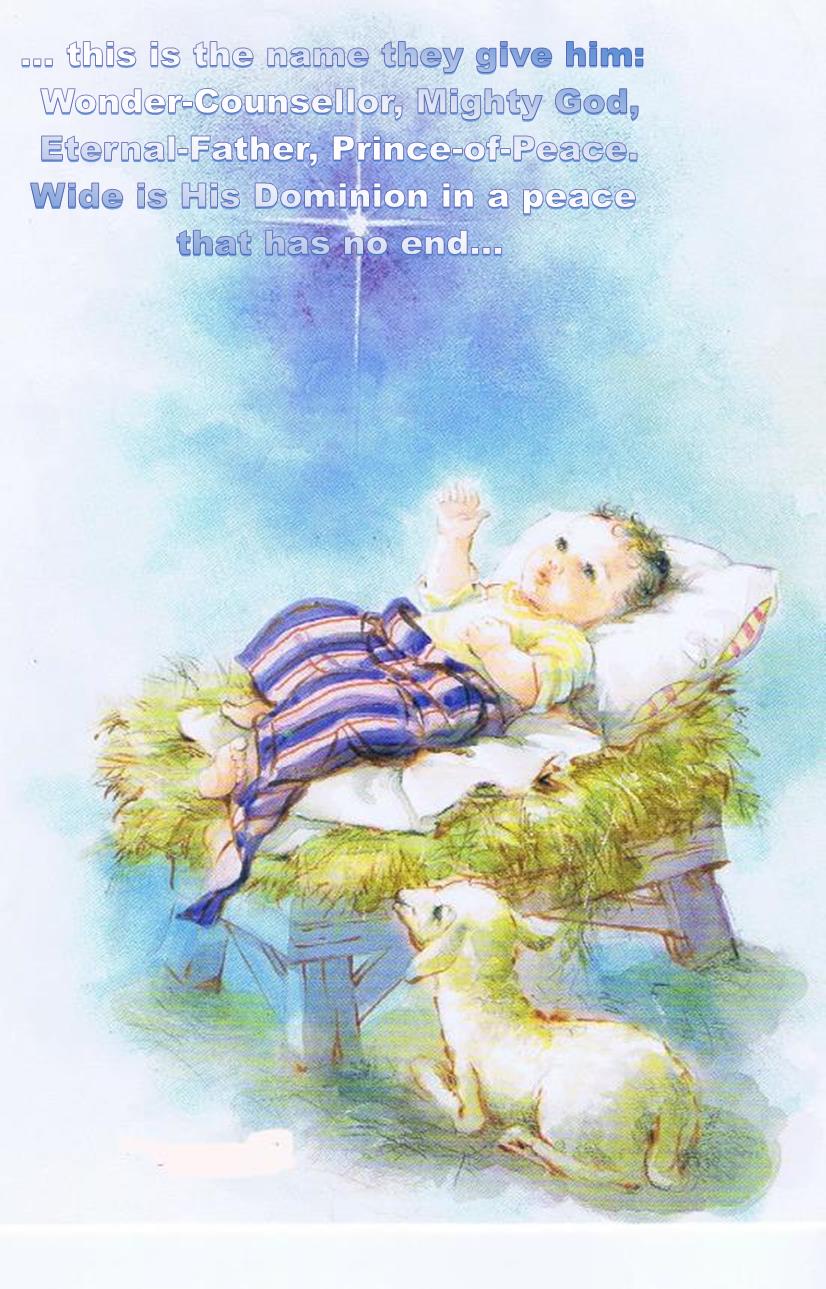 For there is a child born for us, a son given to us and dominion is laid on his shoulders; and this is the name they give him: Wonder-Counsellor, Mighty-God, Eternal-Father, Prince-of-Peace.