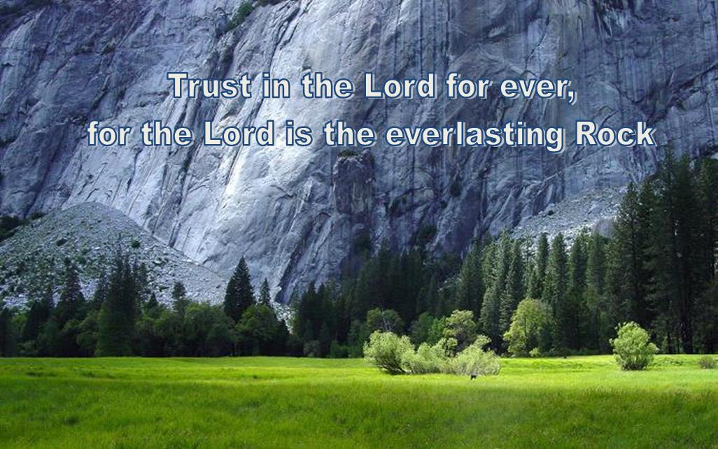 Trust in the Lord for ever, for the Lord is the everlasting Rock; he has brought low those who lived high up in the steep citadel; he brings it down, brings it down to the ground, flings it down in the dust: the feet of the lowly, the footsteps of the poor trample on it.