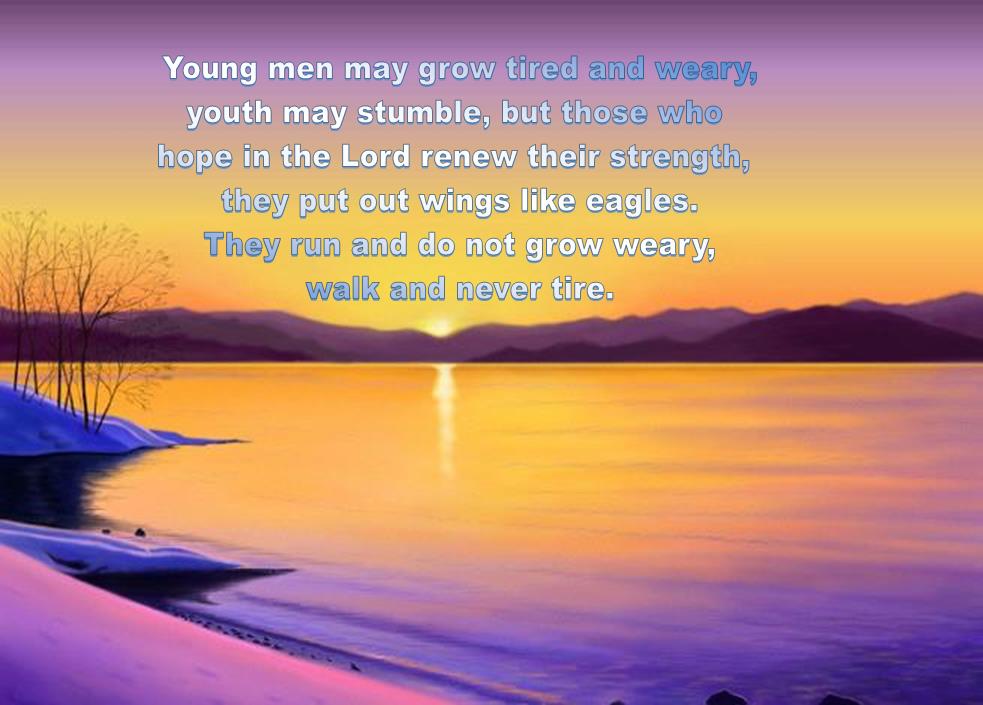 Young man may grow tired and weary, youth may stumble, but those who hope in the Lord renew their strength, they put out wings like eagles.