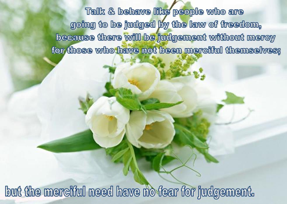 13 Whoever acts without mercy will be judged without mercy but the merciful need no fear for judgement. (Interpretation: The merciful can afford to laugh at judgement time.) 8-)