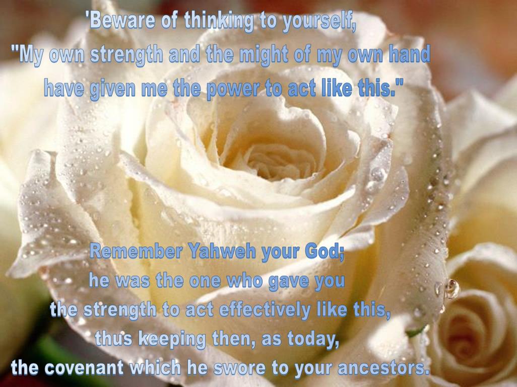17 'Beware of thinking to yourself, "My own strength and the might of my own hand have given me the power to act like this."