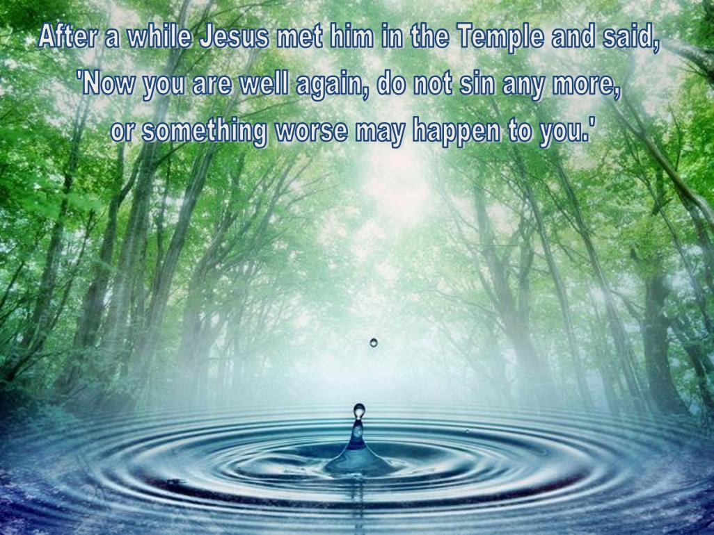 14 After a while Jesus met him in the Temple and said, 'Now you are well again, do not sin any more, or something worse may happen to you.'