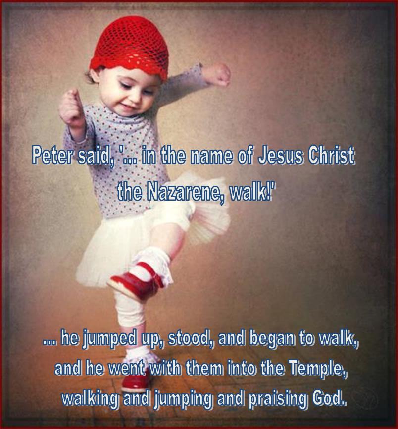 8 he jumped up, stood, and began to walk, and he went with them into the Temple, walking and jumping and praising God.