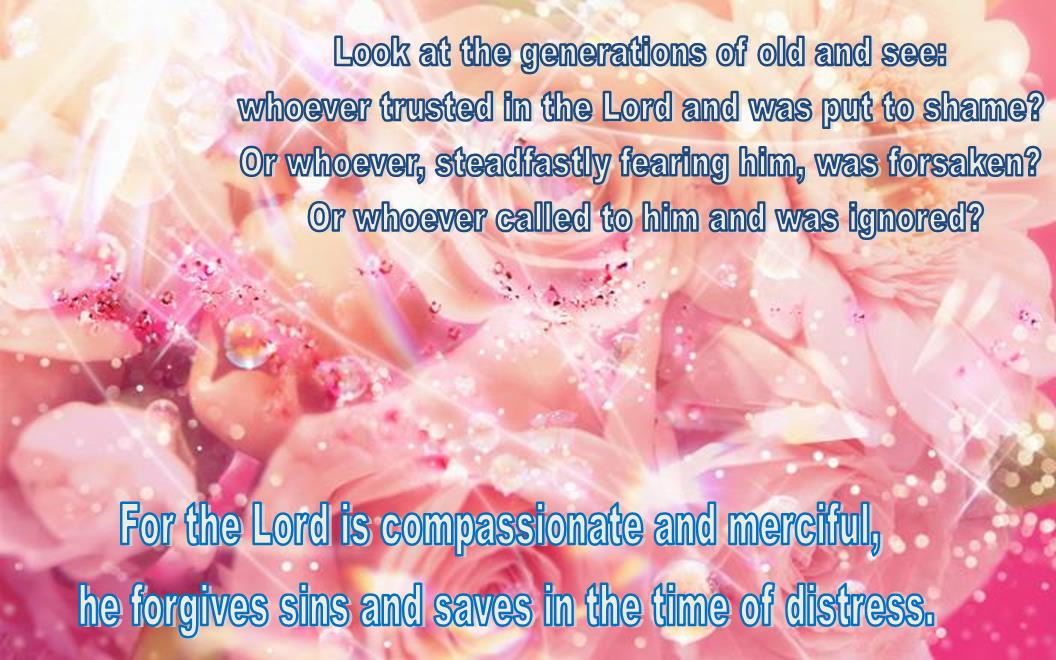 10 Look at the generations of old and see: whoever trusted in the Lord and was put to shame? Or whoever, steadfastly fearing him, was forsaken? Or whoever called to him and was ignored?