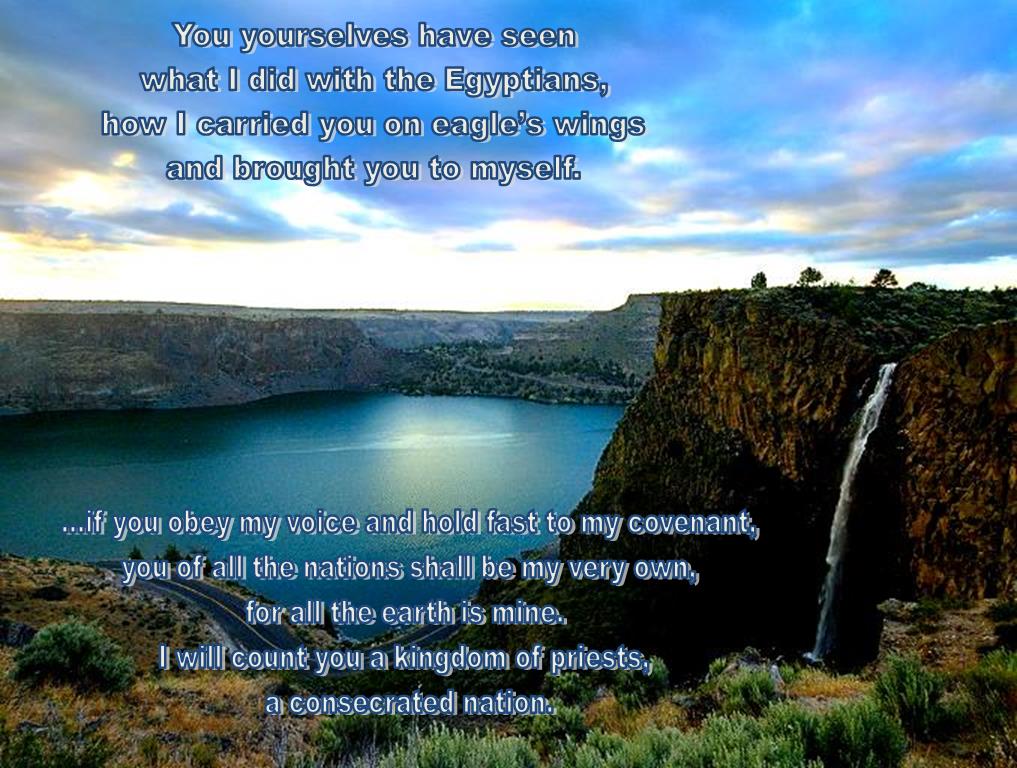 ‘“You yourselves have seen what I did with the Egyptians, how I carried you on eagle’s wings and brought you to myself. From this you know that now, if you obey my voice and hold fast to my covenant, you of all the nations shall be my very own, for all the earth is mine. I will count you a kingdom of priests, a consecrated nation.”