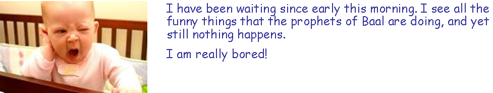 27 Midday came, and Elijah mocked them. 'Call louder,' he said, 'for he is a god: he is preoccupied or he is busy, or he has gone on a journey; perhaps he is asleep and needs to be woken up!'