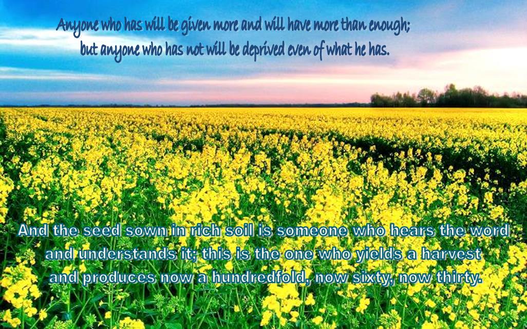 23 And the seed sown in rich soil is someone who hears the word and understands it; this is the one who yields a harvest and produces now a hundredfold, now sixty, now thirty.' |