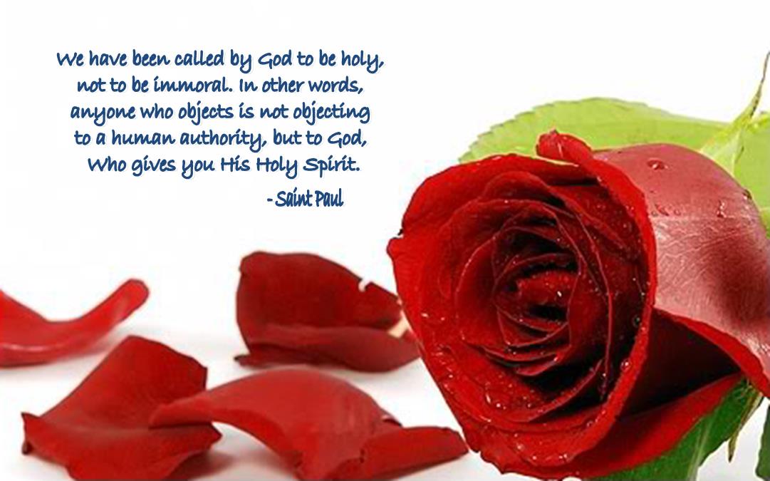Chastity is included in that continence which St. Paul numbers among the gifts of the Holy Spirit, while he condemns sensuality as a vice particularly unworthy of the Christian and one which precludes entry into the Kingdom of Heaven.[29] "What God wants is for all to be holy. He wants you to keep away from fornication, and each one of you know how to use the body that belongs to him in a way that is holy and honorable, not giving way to selfish lust like the pagans who do not know God. He wants nobody at all ever to sin by taking advantage of a brother in these matters. . . . We have been called by God to be holy, not to be immoral. In other words, anyone who objects is not objecting to a human authority, but to God, Who gives you His Holy Spirit."[30] "Among you there must not be even a mention of fornication or impurity in any of its forms, or promiscuity: this would hardly become the saints! For you can be quite certain that nobody who actually indulges in fornication or impurity or promiscuity - which is worshipping a false god - can inherit anything of the Kingdom of God. Do not let anyone deceive you with empty arguments: it is for this loose living that God's anger comes down on those who rebel against Him. Make sure that you are not included with them. You were darkness once, but now you are light in the Lord; be like children of light, for the effects of the light are seen in complete goodness and right living and truth."[31]