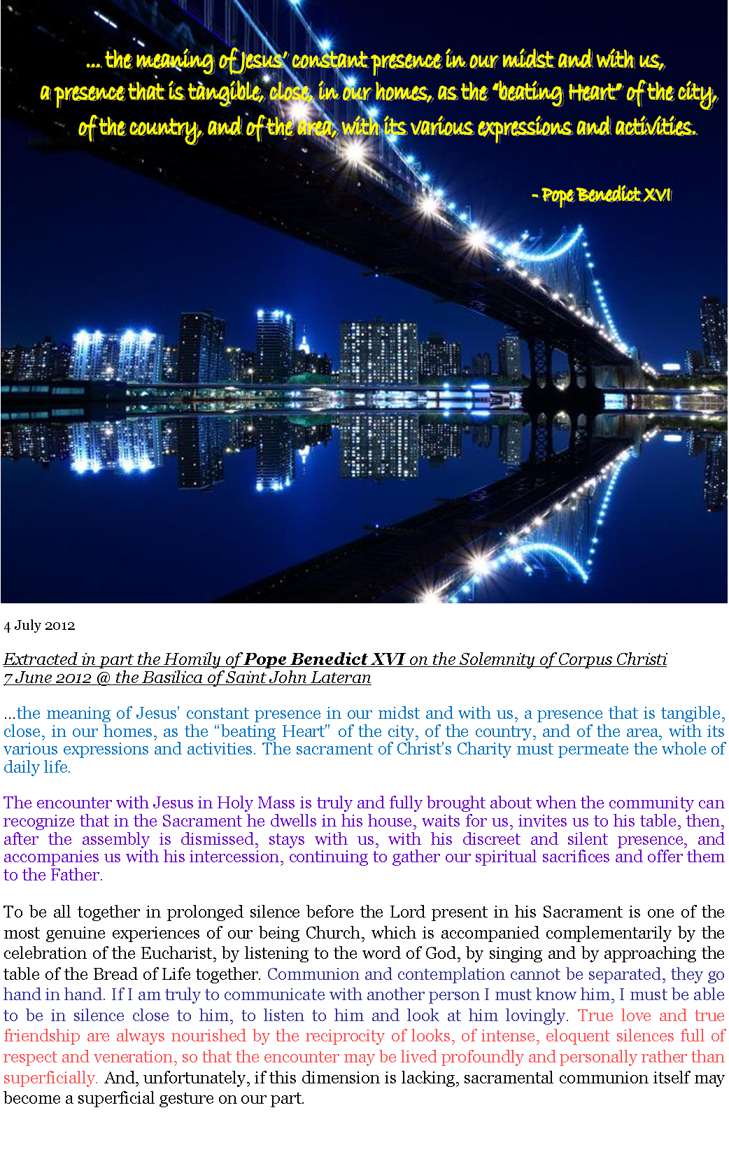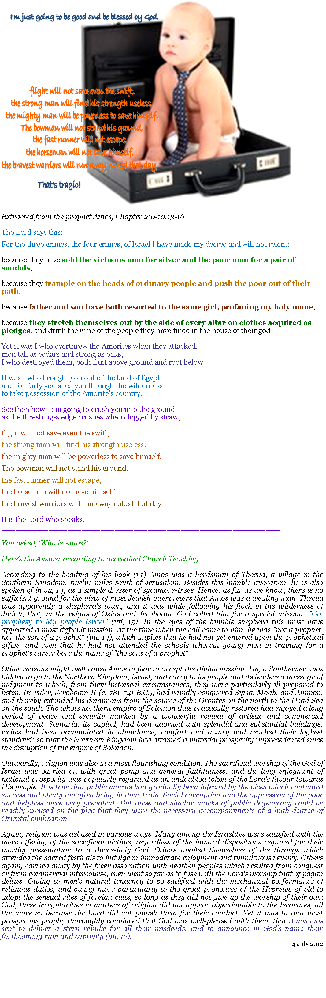 But let justice flow like water, and integrity like an unfailing stream. 6 July 2012