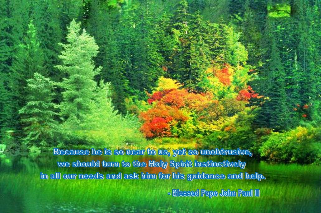 7. Because he is so near to us, yet so unobtrusive, we should turn to the Holy Spirit instinctively in all our needs and ask him for his guidance and help. God has sent him to us because of our helplessness, as Saint Paul says so beautifully: “The Spirit too comes to help us in our weakness. For when we cannot choose words in order to pray properly, the Spirit himself expresses our plea in a way that could never be put into words”. What more could God do for us? What more can we expect of God than that?