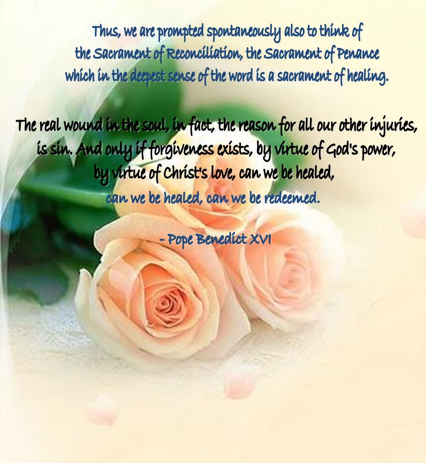 St Raphael is presented to us, above all in the Book of Tobit, as the Angel to whom is entrusted the task of healing. When Jesus sends his disciples out on a mission, the task of proclaiming the Gospel is always linked with that of healing. The Good Samaritan, in accepting and healing the injured person lying by the wayside, becomes without words a witness of God's love. We are all this injured man, in need of being healed. Proclaiming the Gospel itself already means healing in itself, because man is in need of truth and love above all things. The Book of Tobit refers to two of the Archangel Raphael's emblematic tasks of healing. He heals the disturbed communion between a man and a woman. He heals their love. He drives out the demons who over and over again exhaust and destroy their love. He purifies the atmosphere between the two and gives them the ability to accept each other for ever. In Tobit's account, this healing is recounted with legendary images. In the New Testament, the order of marriage established in creation and threatened in many ways by sin, is healed through Christ's acceptance of it in his redeeming love. He makes marriage a sacrament: his love, put on a cross for us, is the healing power which in all forms of chaos offers the capacity for reconciliation, purifies the atmosphere and mends the wounds. The priest is entrusted with the task of leading men and women ever anew to the reconciling power of Christ's love. He must be the healing "angel" who helps them to anchor their love to the sacrament and to live it with an ever renewed commitment based upon it. Secondly, the Book of Tobit speaks of the healing of sightless eyes. We all know how threatened we are today by blindness to God. How great is the danger that with all we know of material things and can do with them, we become blind to God's light. Healing this blindness through the message of faith and the witness of love is Raphael's service, entrusted day after day to the priest and in a special way to the Bishop. Thus, we are prompted spontaneously also to think of the Sacrament of Reconciliation, the Sacrament of Penance which in the deepest sense of the word is a sacrament of healing. The real wound in the soul, in fact, the reason for all our other injuries, is sin. And only if forgiveness exists, by virtue of God's power, by virtue of Christ's love, can we be healed, can we be redeemed.
