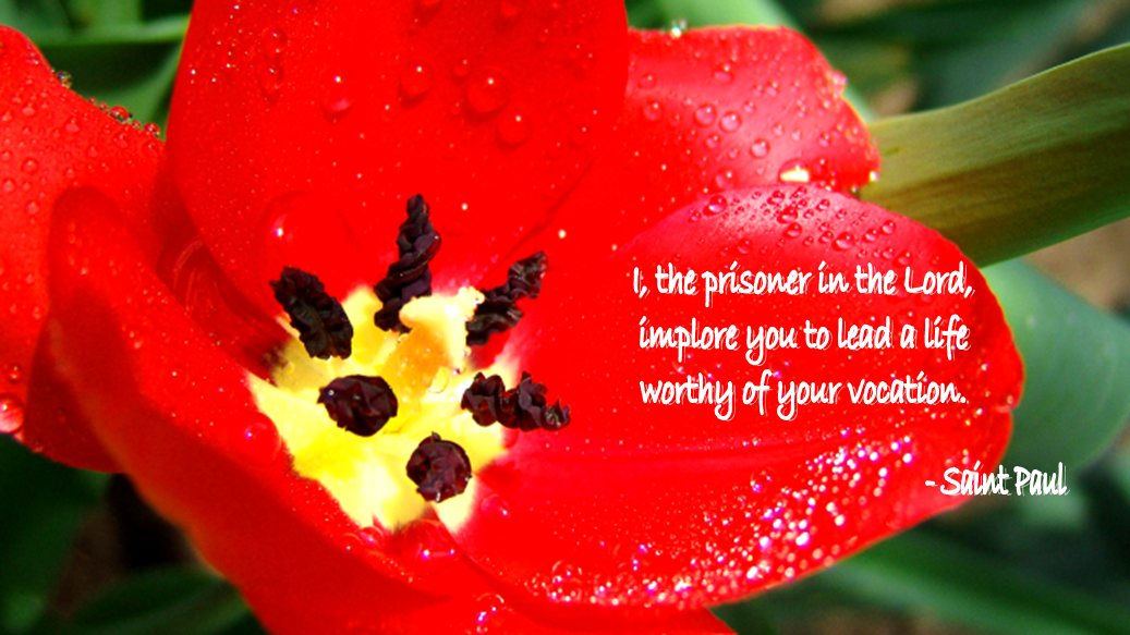 I, the prisoner in the Lord, implore you to lead a life worthy of your vocation.