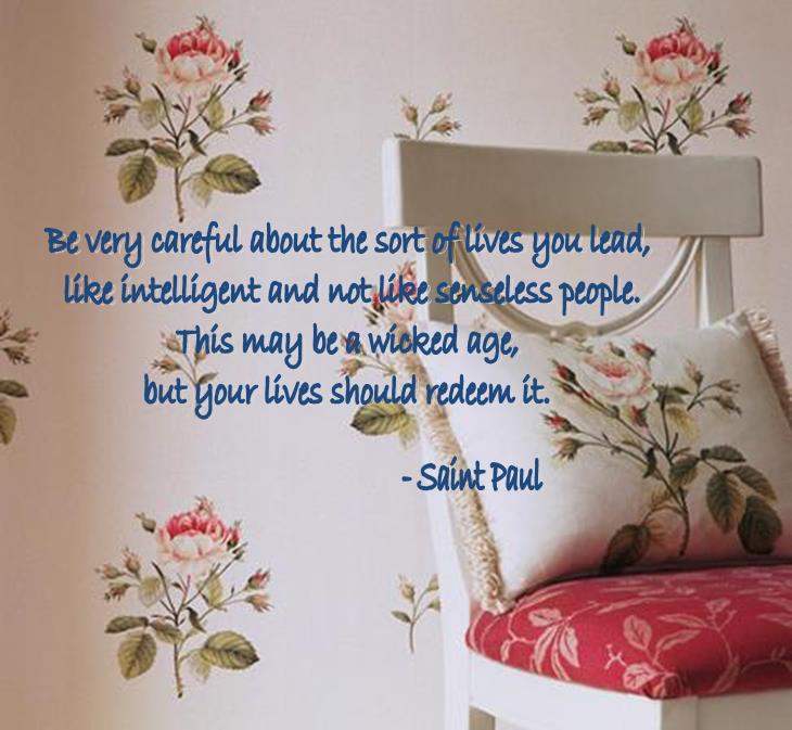 “Be very careful about the sort of lives you lead, like intelligent and not like senseless people. This may be a wicked age, but your lives should redeem it.” (Ephesians 5:15)