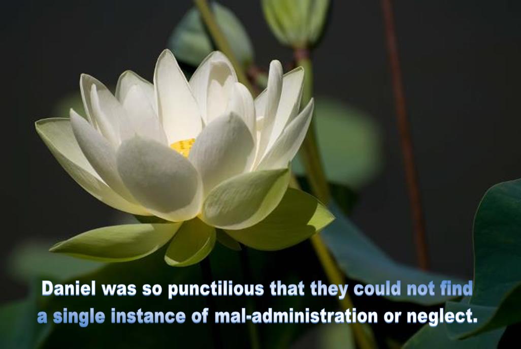 5 The presidents and satraps, in consequence, started hunting for some affair of state by which they could discredit Daniel; but they could find nothing to his discredit, and no case of negligence; he was so punctilious that they could not find a single instance of mal-administration or neglect.