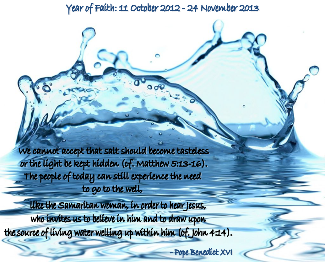 3. We cannot accept that salt should become tasteless or the light be kept hidden (cf. Matthew 5:13-16). The people of today can still experience the need to go to the well, like the Samaritan woman, in order to hear Jesus, who invites us to believe in him and to draw upon the source of living water welling up within him (cf. John 4:14). We must rediscover a taste for feeding ourselves on the word of God, faithfully handed down by the Church, and on the bread of life, offered as sustenance for his disciples (cf. John 6:51). Indeed, the teaching of Jesus still resounds in our day with the same power: “Do not labour for the food which perishes, but for the food which endures to eternal life” (John 6:27). The question posed by his listeners is the same that we ask today: “What must we do, to be doing the works of God?” (John 6:28). We know Jesus’ reply: “This is the work of God, that you believe in him whom he has sent” (John 6:29). Belief in Jesus Christ, then, is the way to arrive definitively at salvation.