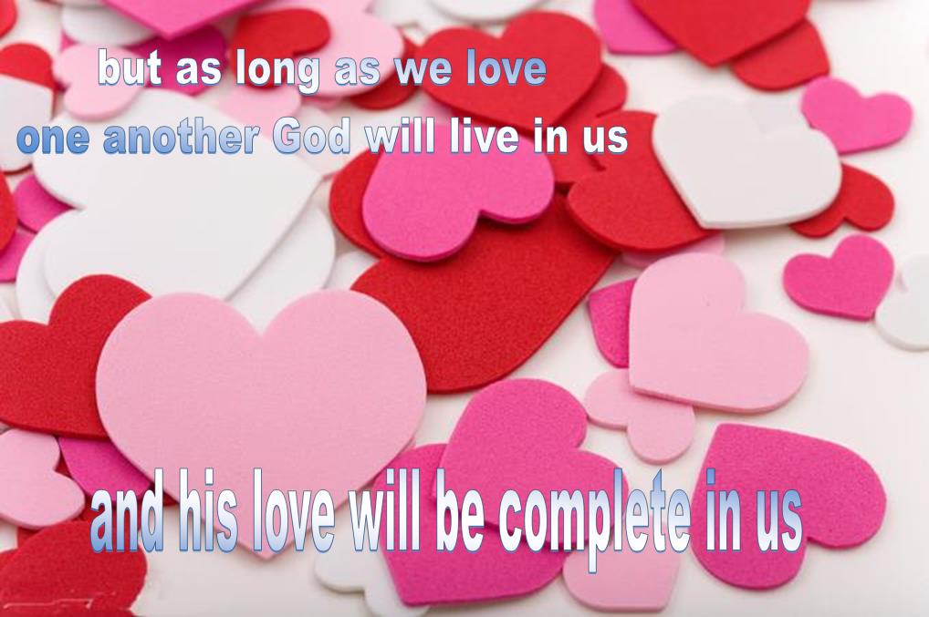 My dear people, since God has loved us so much, we too should love one another. No one has even seen God; but as long as we love one another God will live in us and his love will be complete in us.