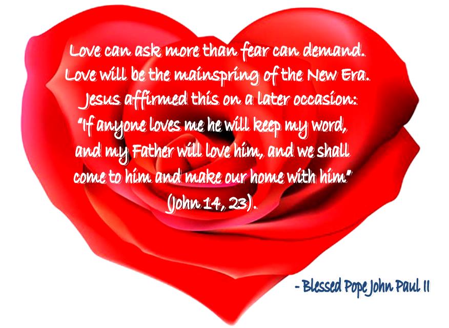 Love can ask more than fear can demand. Love will be the mainspring of the New Era. Jesus affirmed this on a later occasion: “If anyone loves me he will keep my word, and my Father will love him, and we shall come to him and make our home with him” (John 14, 23). |