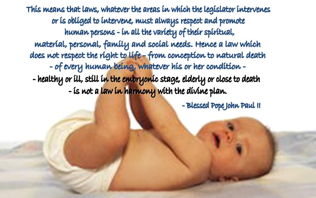 This means that laws, whatever the areas in which the legislator intervenes or is obliged to intervene, must always respect and promote human persons - in all the variety of their spiritual, material, personal, family and social needs. Hence a law which does not respect the right to life - from conception to natural death - of every human being, whatever his or her condition - healthy or ill, still in the embryonic stage, elderly or close to death - is not a law in harmony with the divine plan. Consequently, Christian legislators may neither contribute to the formulation of such a law nor approve it in parliamentary assembly, although, where such a law already exists, it is licit for them to propose amendments which would diminish its adverse effects. The same must be said with regard to all laws which would do harm to the family, striking at its unity and its indissolubility, or which would give legal validity to a union between persons, including those of the same sex, who demand the same rights as the family founded upon marriage between a man and a woman.