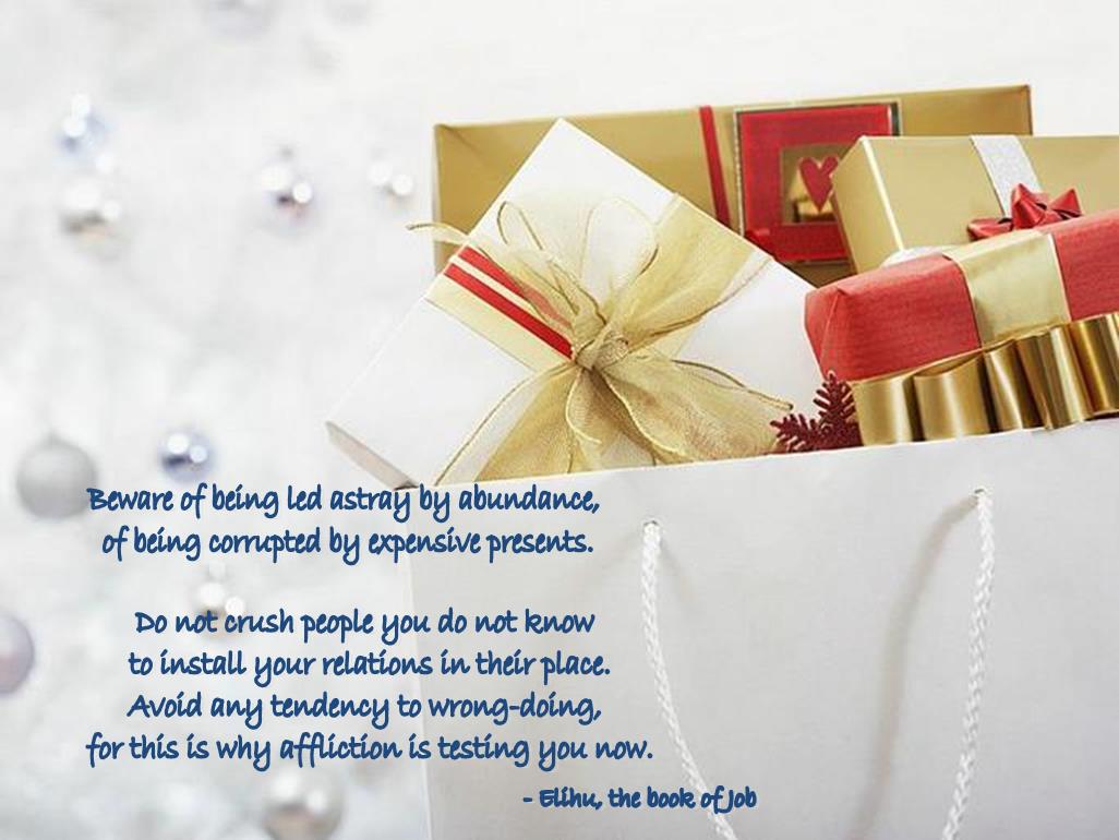18 Beware of being led astray by abundance, of being corrupted by expensive presents.