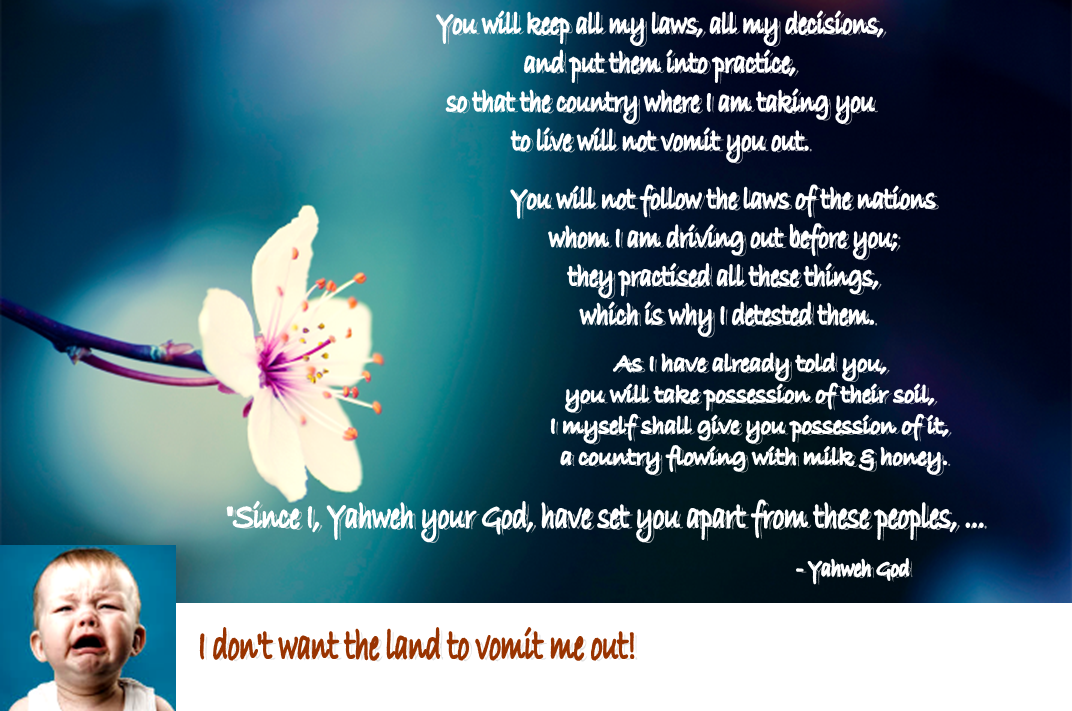 22 "You will keep all my laws, all my decisions, and put them into practice, so that the country where I am taking you to live will not vomit you out.