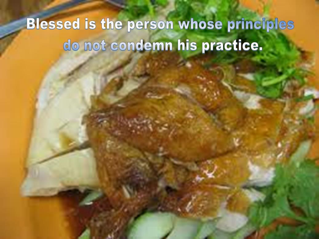 22 Within yourself, before God, hold on to what you already believe. Blessed is the person whose principles do not condemn his practice.
