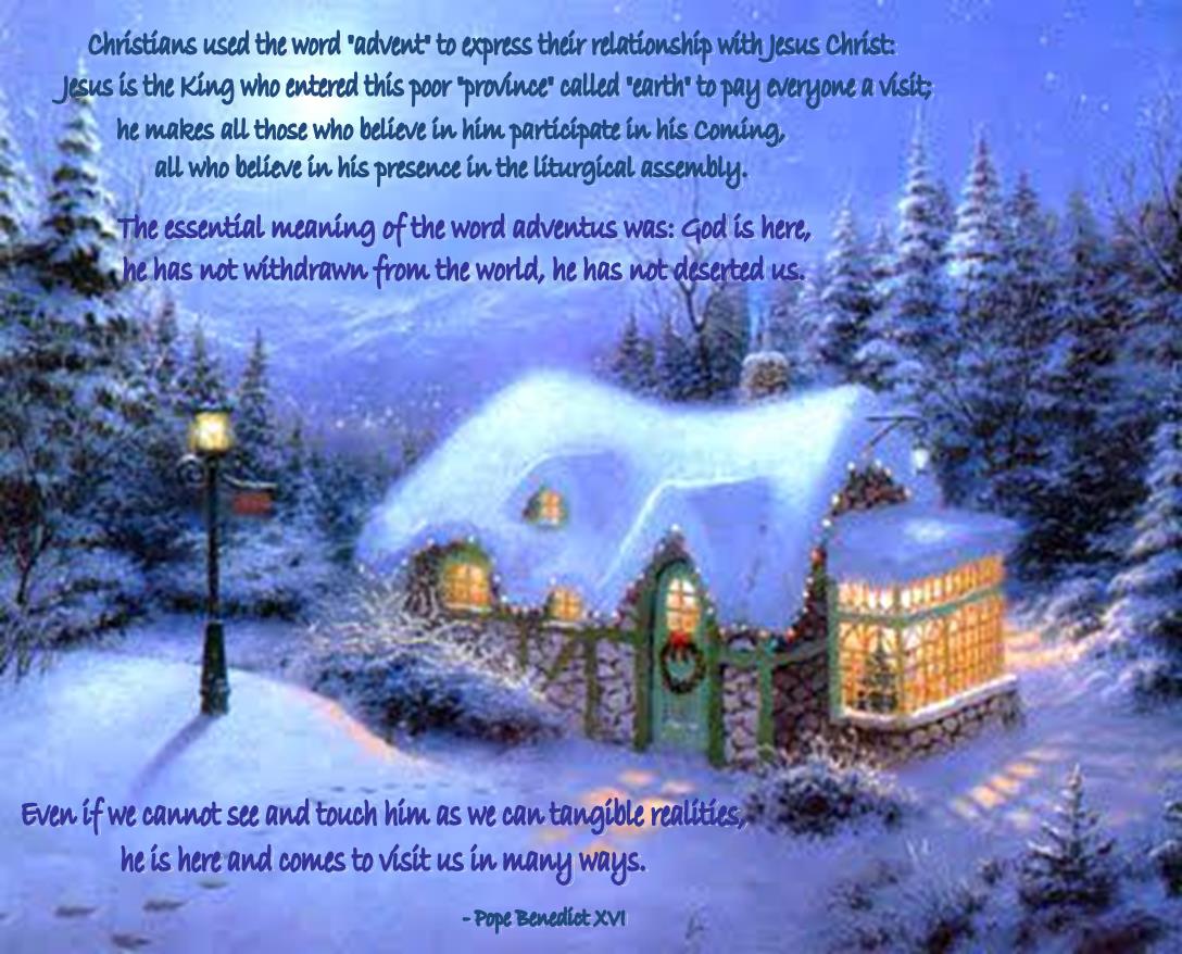 Let us reflect briefly on the meaning of this word, which can be rendered with "presence", "arrival" or "coming". In the language of the ancient world it was a technical term used to indicate the arrival of an official or the visit of the king or emperor to a province. However, it could also mean the coming of the divinity that emerges from concealment to manifest himself forcefully or that was celebrated as being present in worship. Christians used the word "advent" to express their relationship with Jesus Christ: Jesus is the King who entered this poor "province" called "earth" to pay everyone a visit; he makes all those who believe in him participate in his Coming, all who believe in his presence in the liturgical assembly. The essential meaning of the word adventus was: God is here, he has not withdrawn from the world, he has not deserted us. Even if we cannot see and touch him as we can tangible realities, he is here and comes to visit us in many ways.