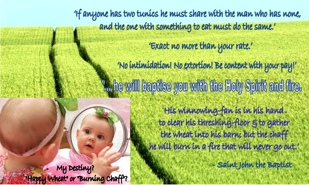 When all the people asked John (hereinafter referred to “John the Baptist”), ‘What must we do?’ he answered, ‘If anyone has two tunics he must share with the man who has none, and the one with something to eat must do the same.’