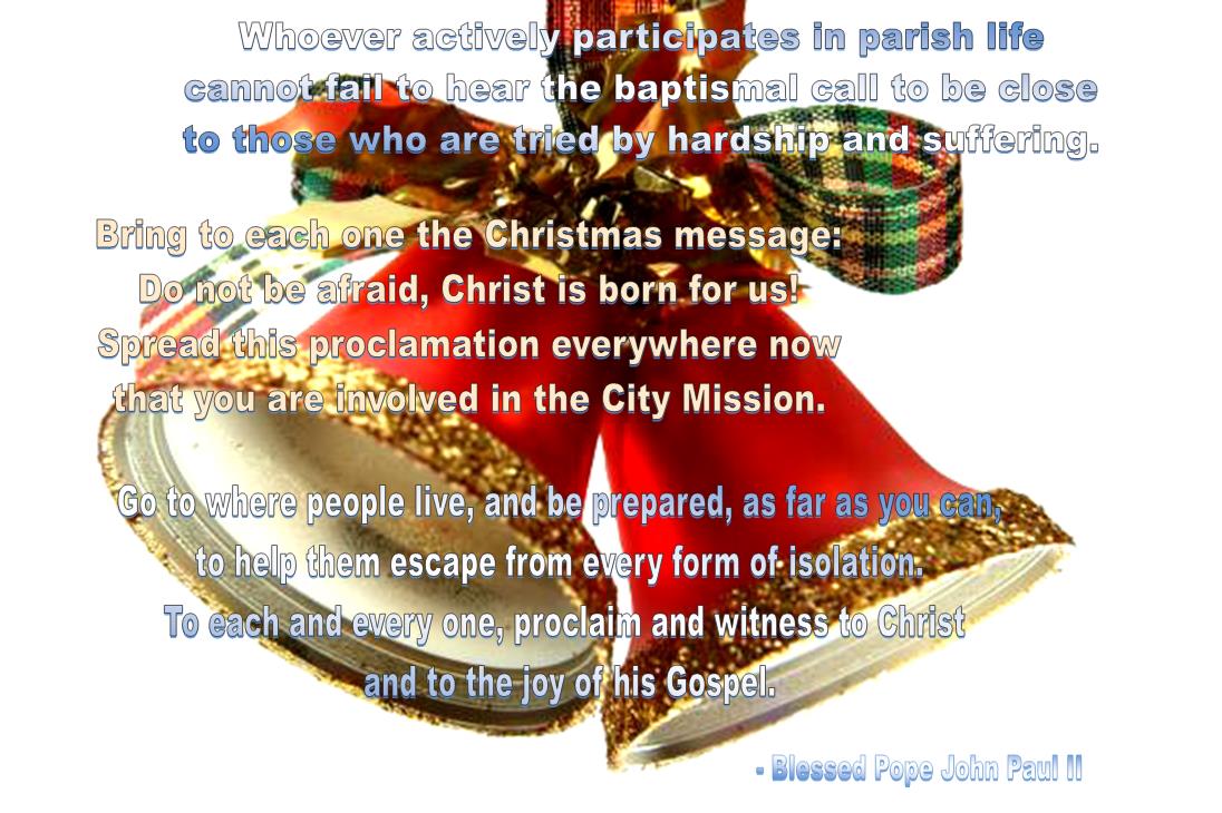 I hope also that the Christmas season and the beginning of the new year will renew a strong missionary fervour in each individual. May this community and the whole Diocese see a rebirth of the zeal experienced by the ancient Christian community of Rome described in the Acts of the Apostles (cf. Acts 28:15, 30).
