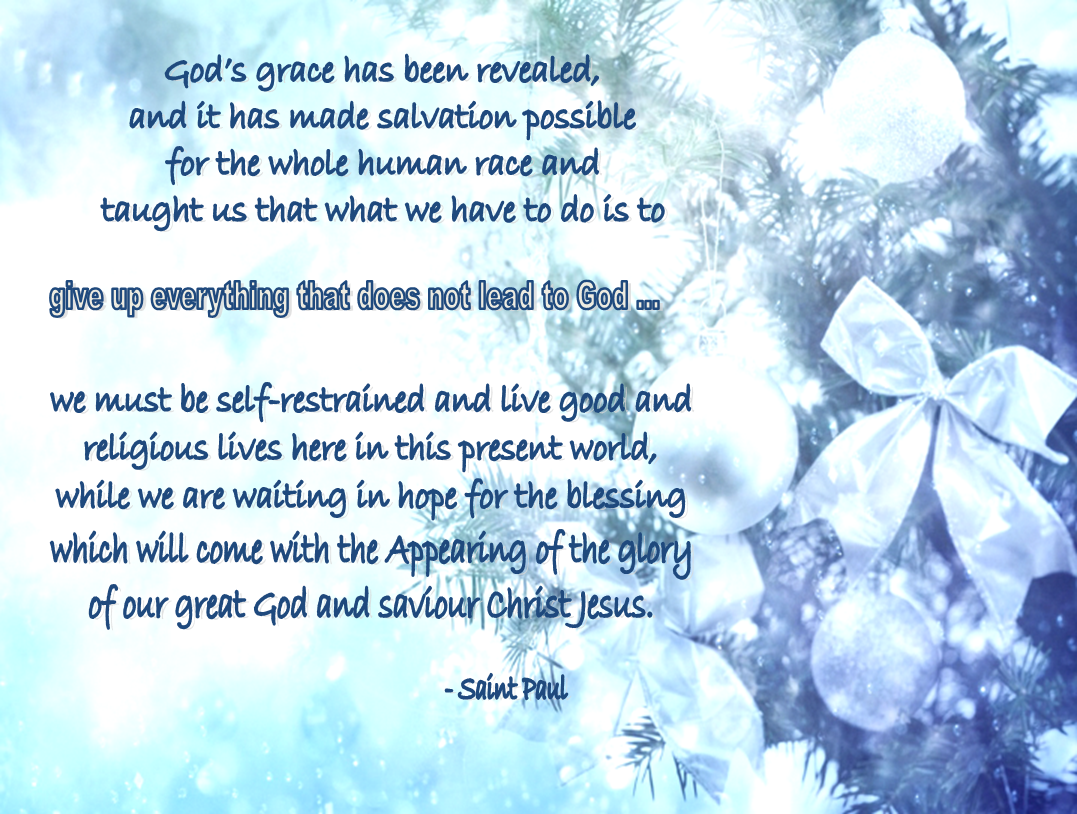 God’s grace has been revealed, and it has made salvation possible for the whole human race and taught us that what we have to do is to give up everything that does not lead to God, and all our worldly ambitions;