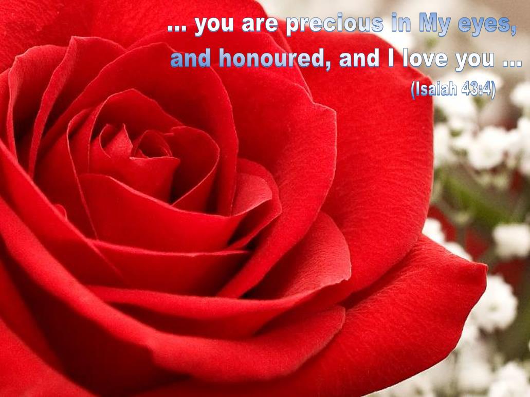 You are precious in My eyes, and honoured, and I love you - Extracted from the Prophet Isaiah, Chapter 43: