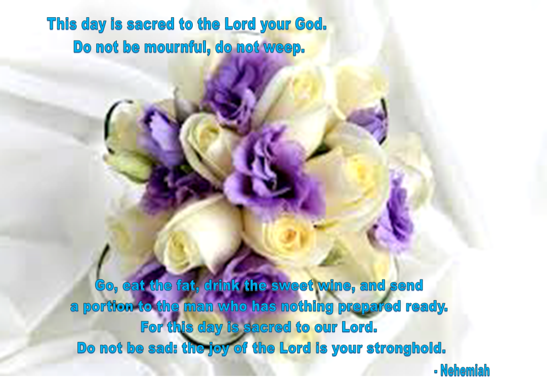 He then said, ‘Go, eat the fat, drink the sweet wine, and send a portion to the man who has nothing prepared ready. For this day is sacred to our Lord. Do not be sad: the joy of the Lord is your stronghold.’ |