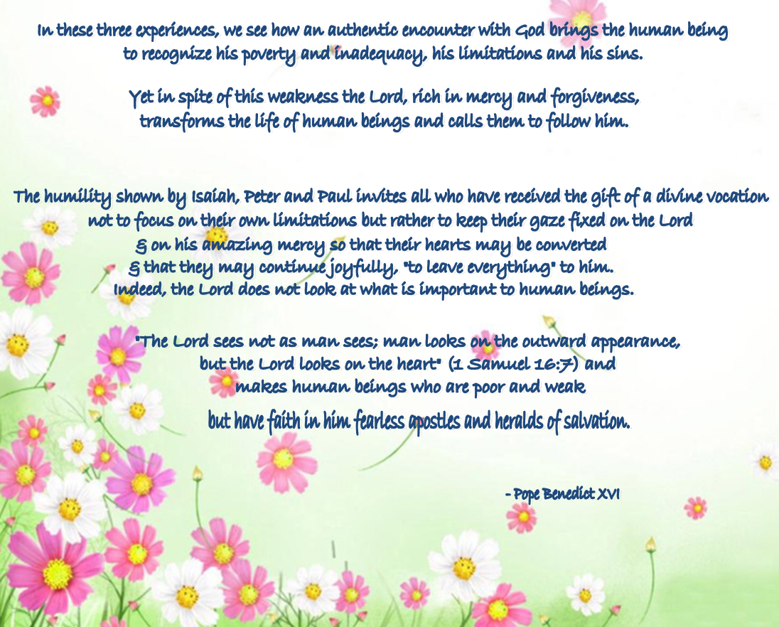 Acknowledgment: We thank the Vatican Publisher for allowing us to publish the words of Pope Benedict XVI, so that it could be accessed by more people all over the world; as a source of God’s encouragements to all of us.