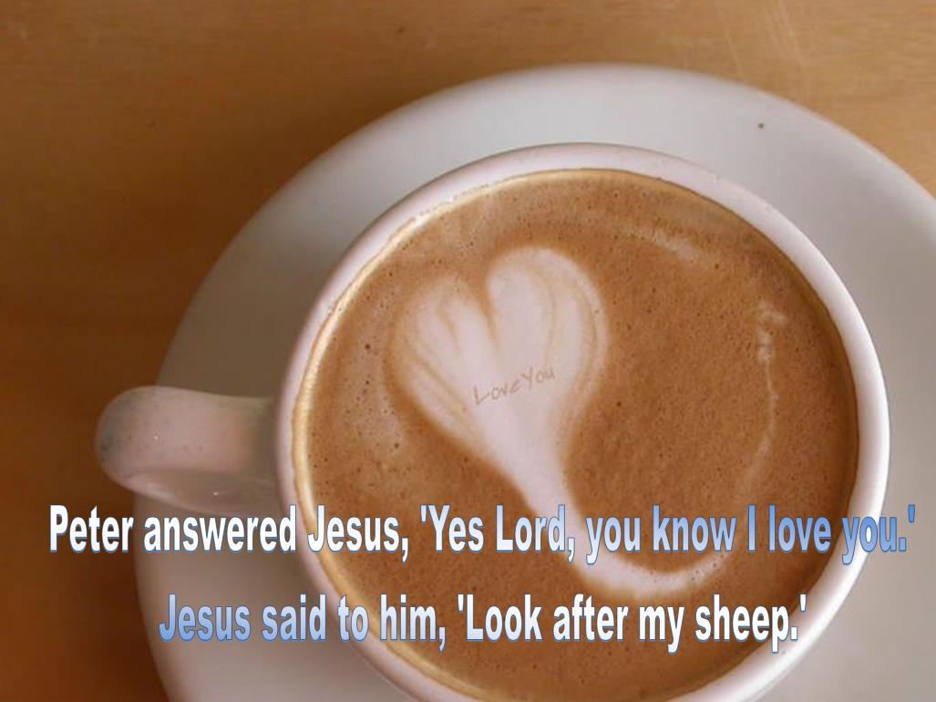 After the meal, Jesus said to Simon Peter, ‘Simon son of John, do you love me more than these others do?” He answered, ‘Yes Lord, you know I love you’. Jesus said to him, ‘Feed my lambs’.