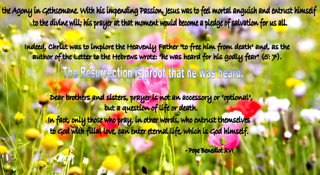 Indeed, Christ was to implore the Heavenly Father "to free him from death" and, as the author of the Letter to the Hebrews wrote: "he was heard for his godly fear" (5: 7). The Resurrection is proof that he was heard.