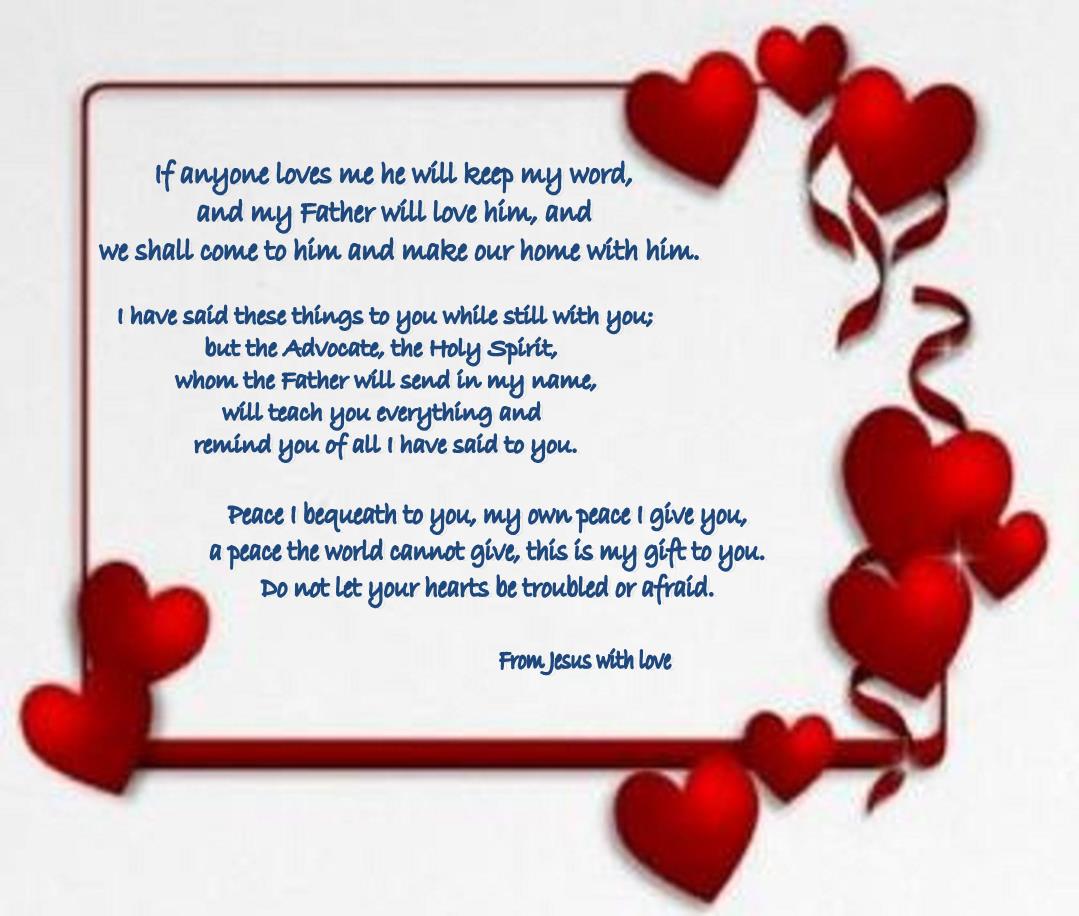 Peace I bequeath to you, my own peace I give you, a peace the world cannot give, this is my gift to you. Do not let your hearts be troubled or afraid.