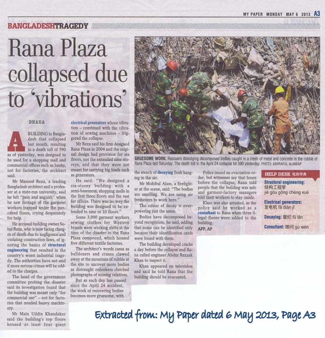 My brother and a few friends were killed in the collapse of the Rana Plaza in Bangladesh on 24 April 2013. Now my mother is very ill due to great grief and all the family members are in deep depression and need to be treated by the Psychiatrists. We want to do something to prevent something similar from happening, is there a simple way to check and prevent? (dated 26 May 2013)