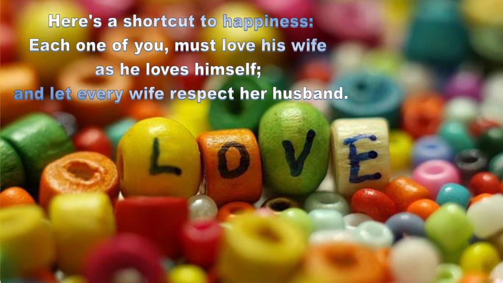 A husband should love his wife as he loves himself, in order to be happy 8-) -Extracted from Ephesians, Chapter 5: