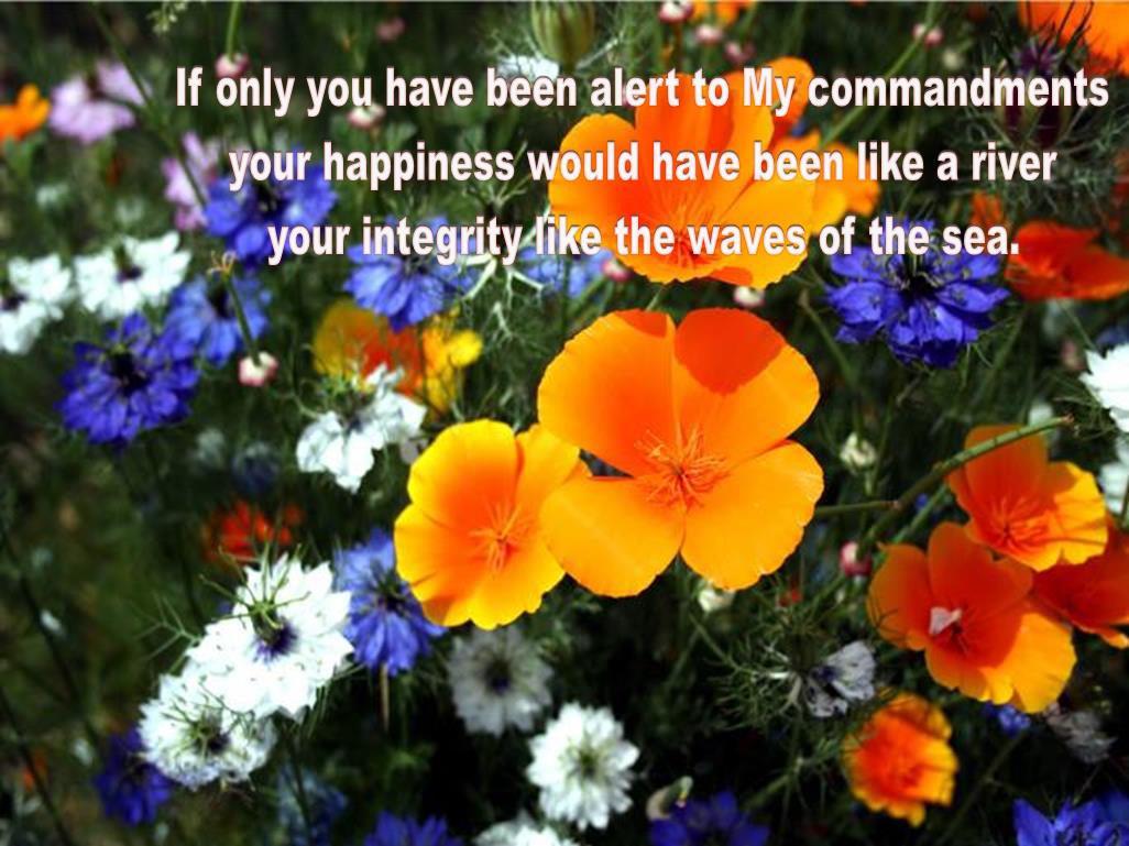 If only you had been alert to My commandments your happiness would have been like a river your integrity like the waves of the sea.